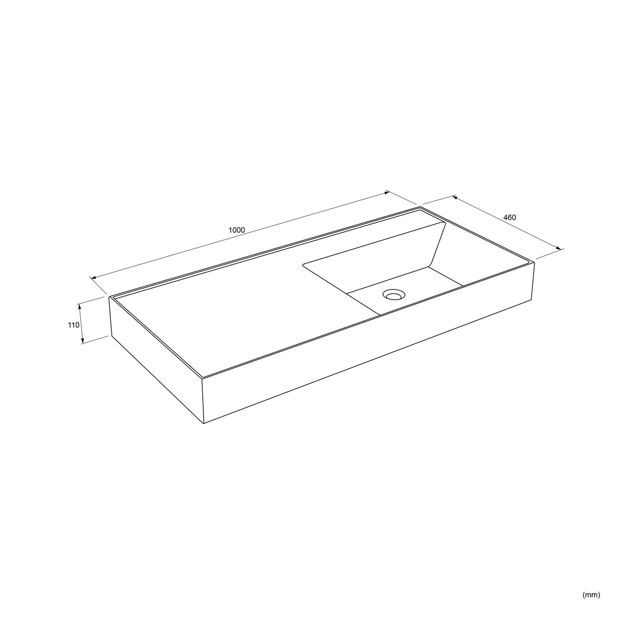 Afmetingen | 100 x 46 cm asymmetrisch rechts | |