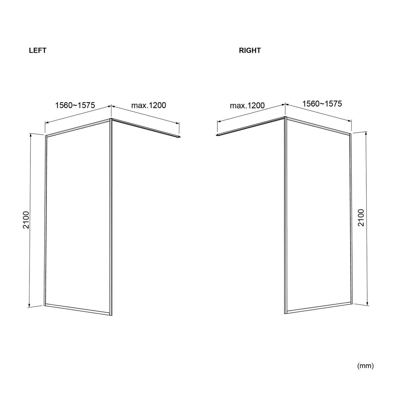 Deze inloopdouche is 140 cm lang en 210 cm hoog. Maximale diepte is 120 cm.