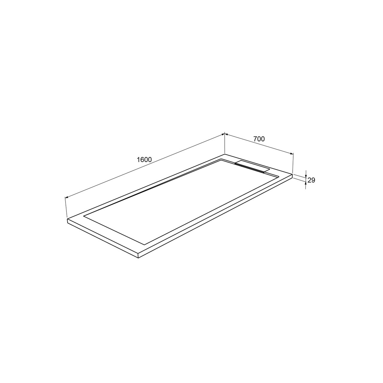 Deze douchebak is 70 cm breed op 160 cm lang.