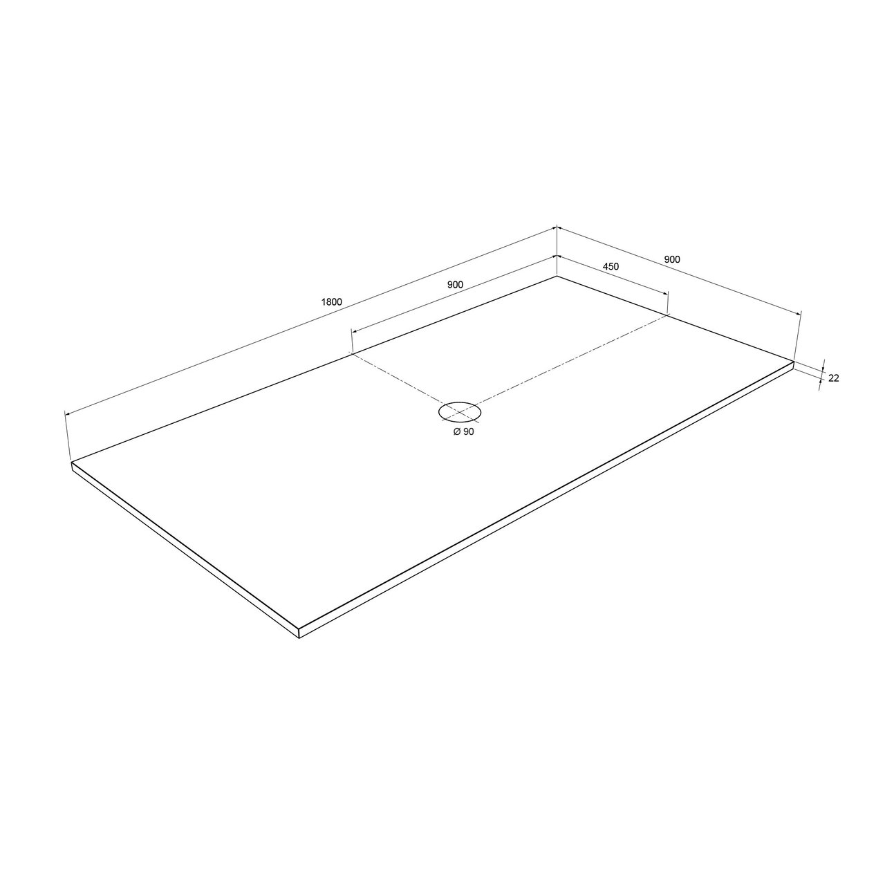 Deze douchebak is 90 cm breed op 180 cm lang.