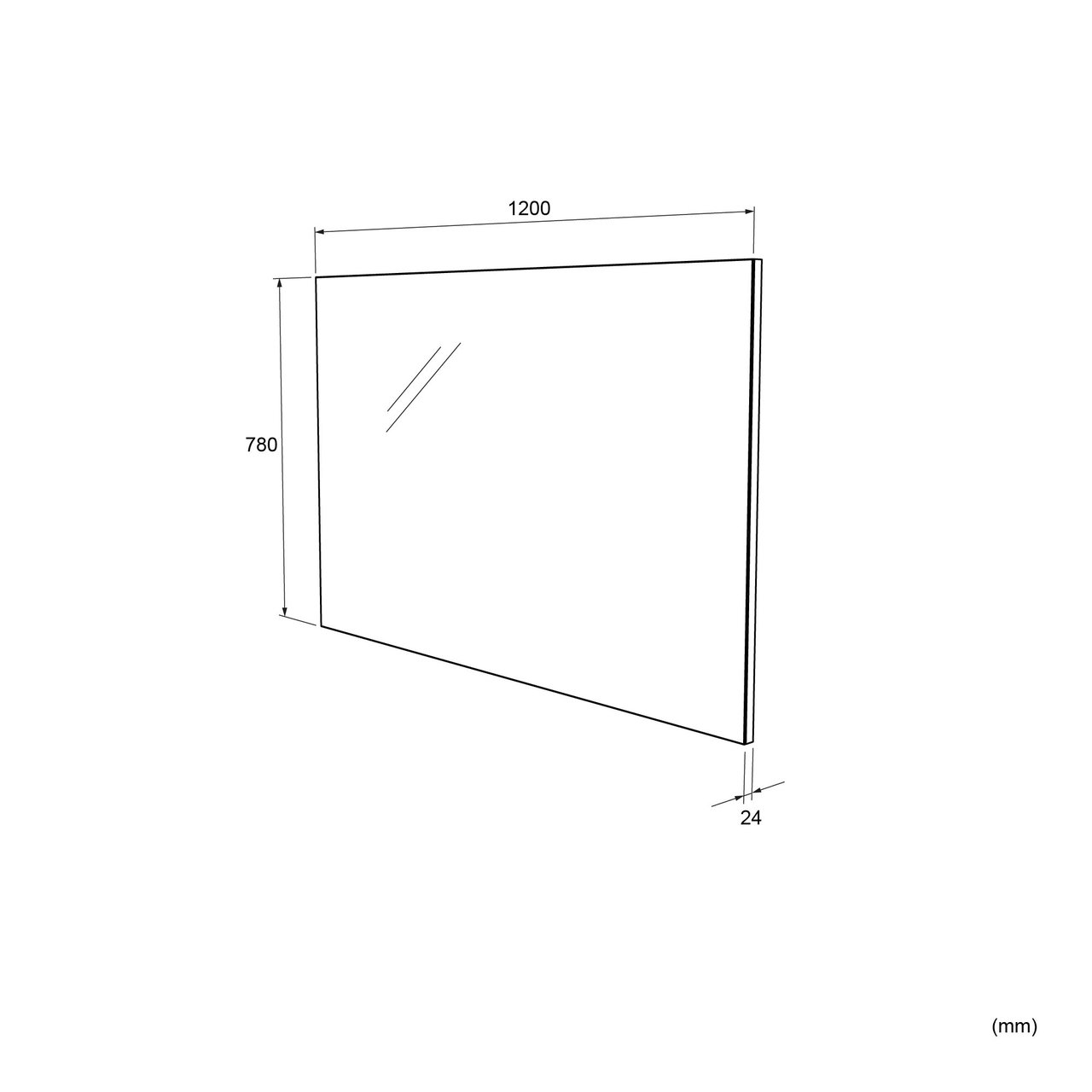 Dit eersteklas rechthoekig spiegelpaneel heeft een breedte van 120 cm en een hoogte van 78 cm. De spiegel zonder kaderrand past in elke badkamer door zijn eenvoud.