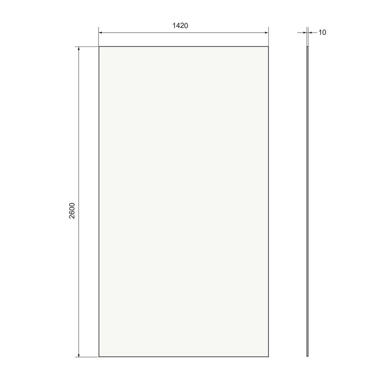 Dit douchewandpaneel is 142 cm breed en 260 cm hoog.