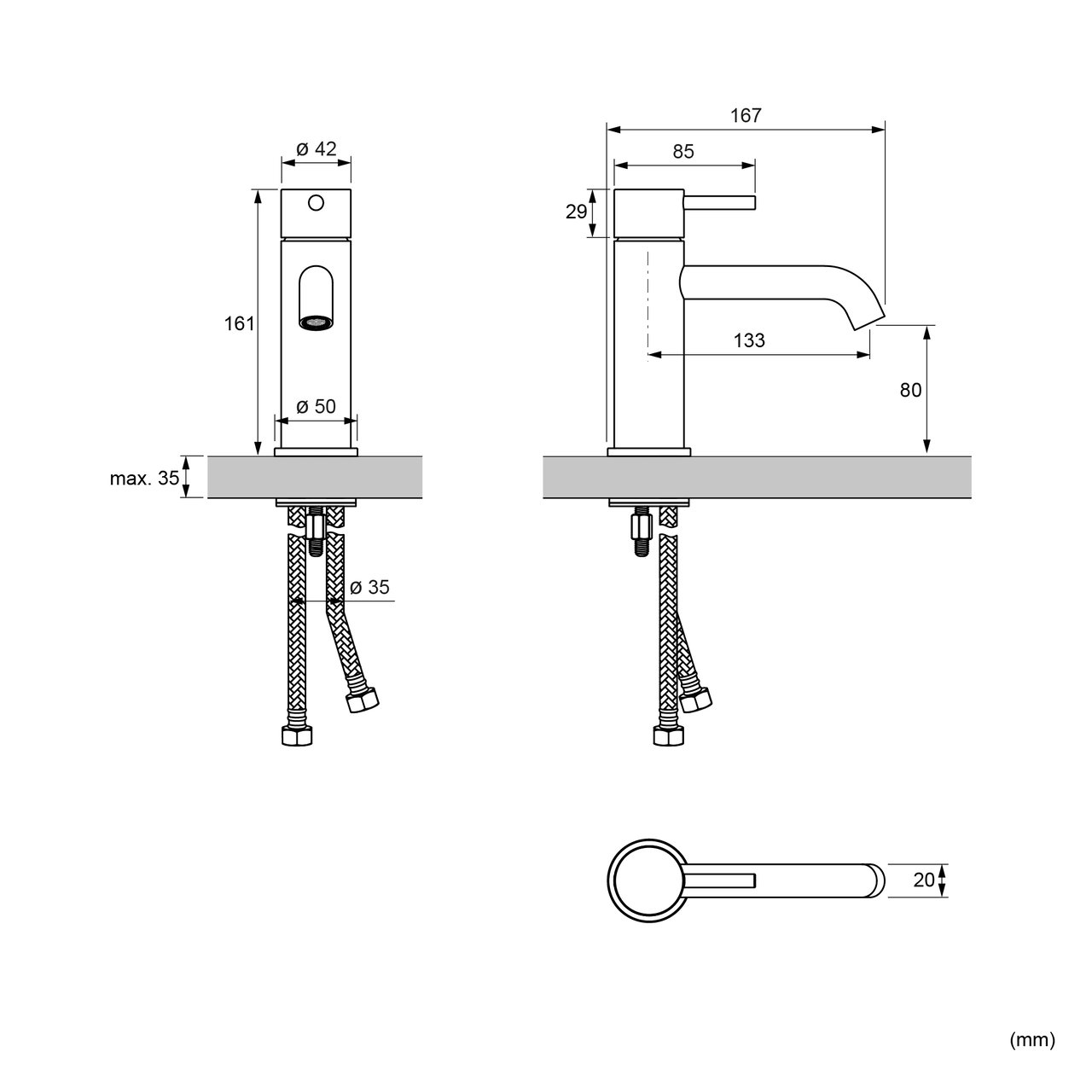Max. dikte wastafelblad voor kraaninstallatie | 30 mm | |