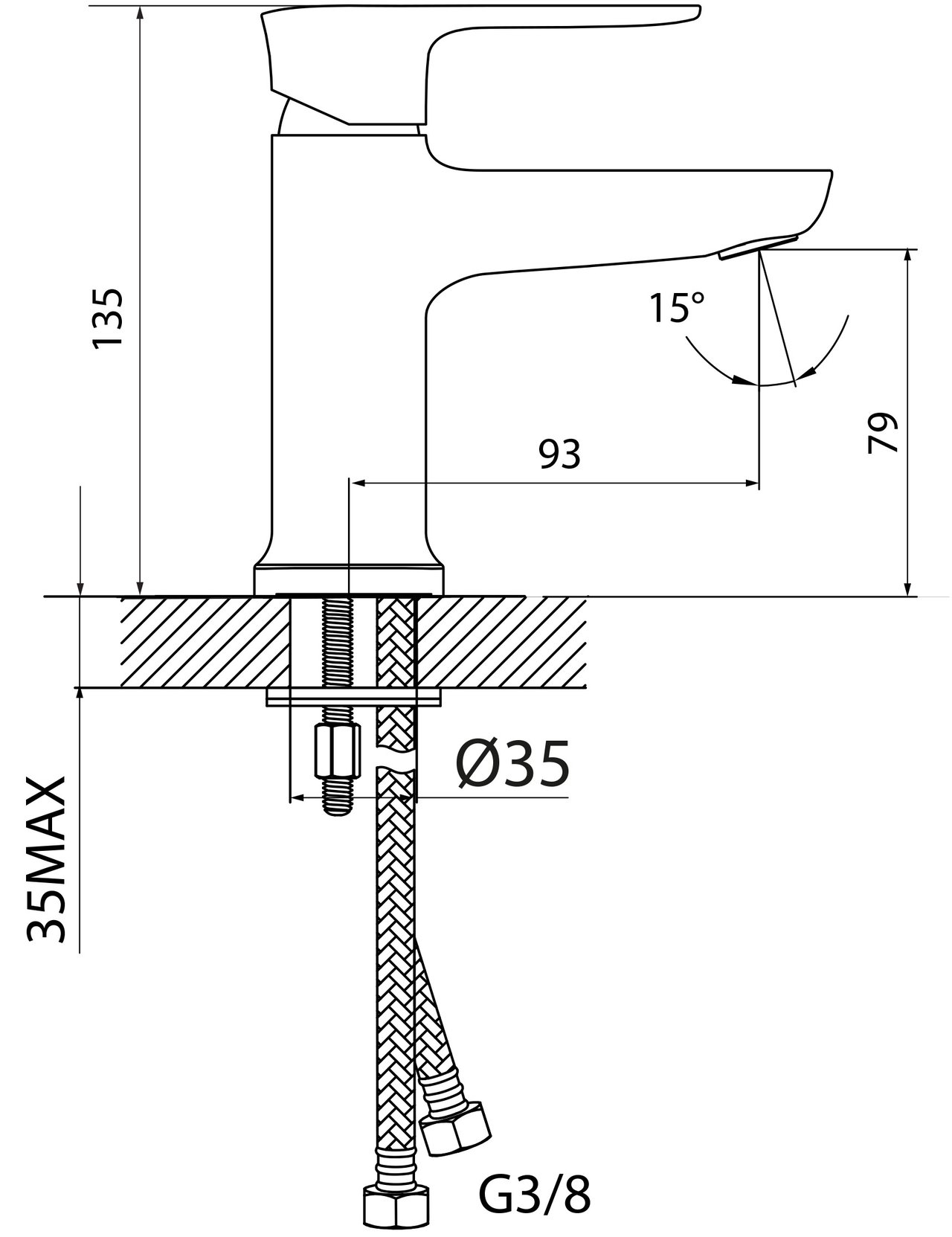 Max. dikte wastafelblad voor kraaninstallatie | 35 mm | |