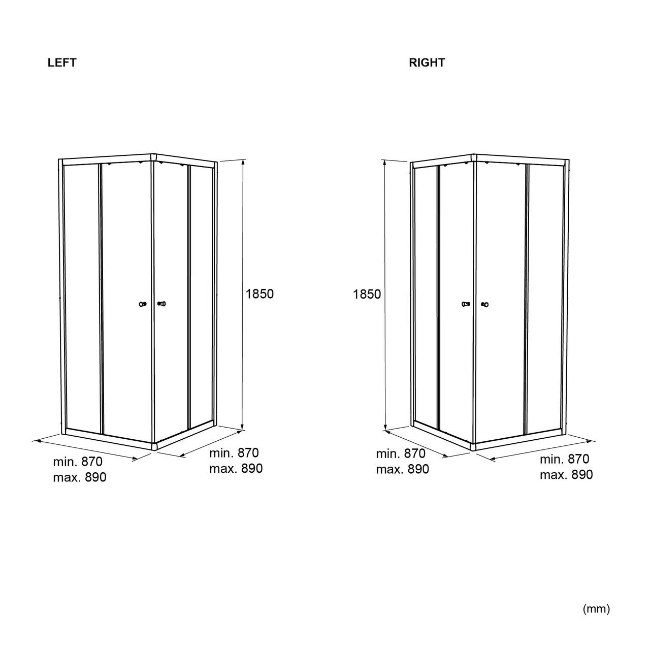Regelbereik breedte douchedeur | 87 - 89cm x 87 - 89cm | |