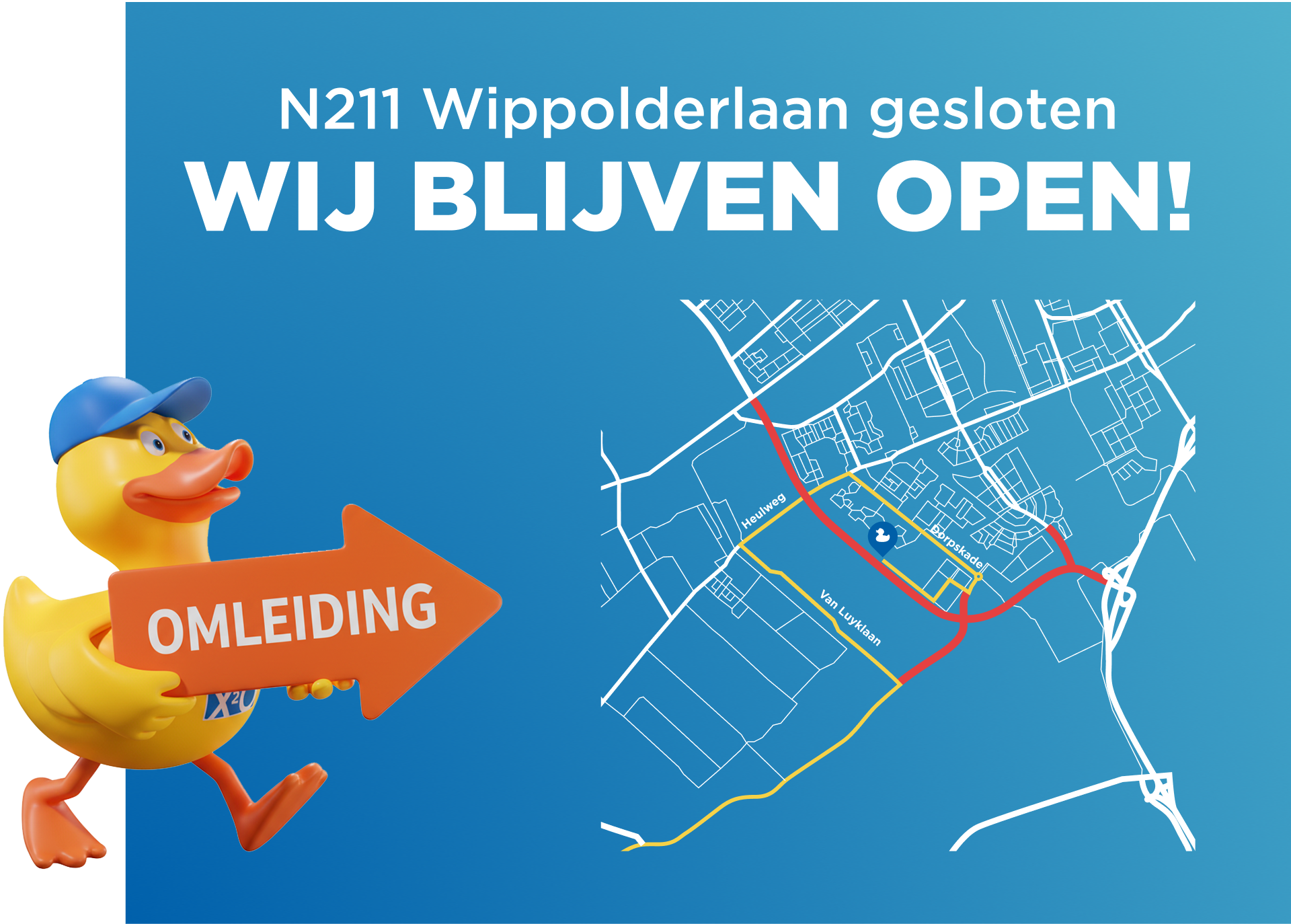 Onze showroom in Wateringen blijft open en bereikbaar (ook op Tweede Paasdag), ondanks de wegwerkzaamheden aan de N211 (Wippolderlaan).