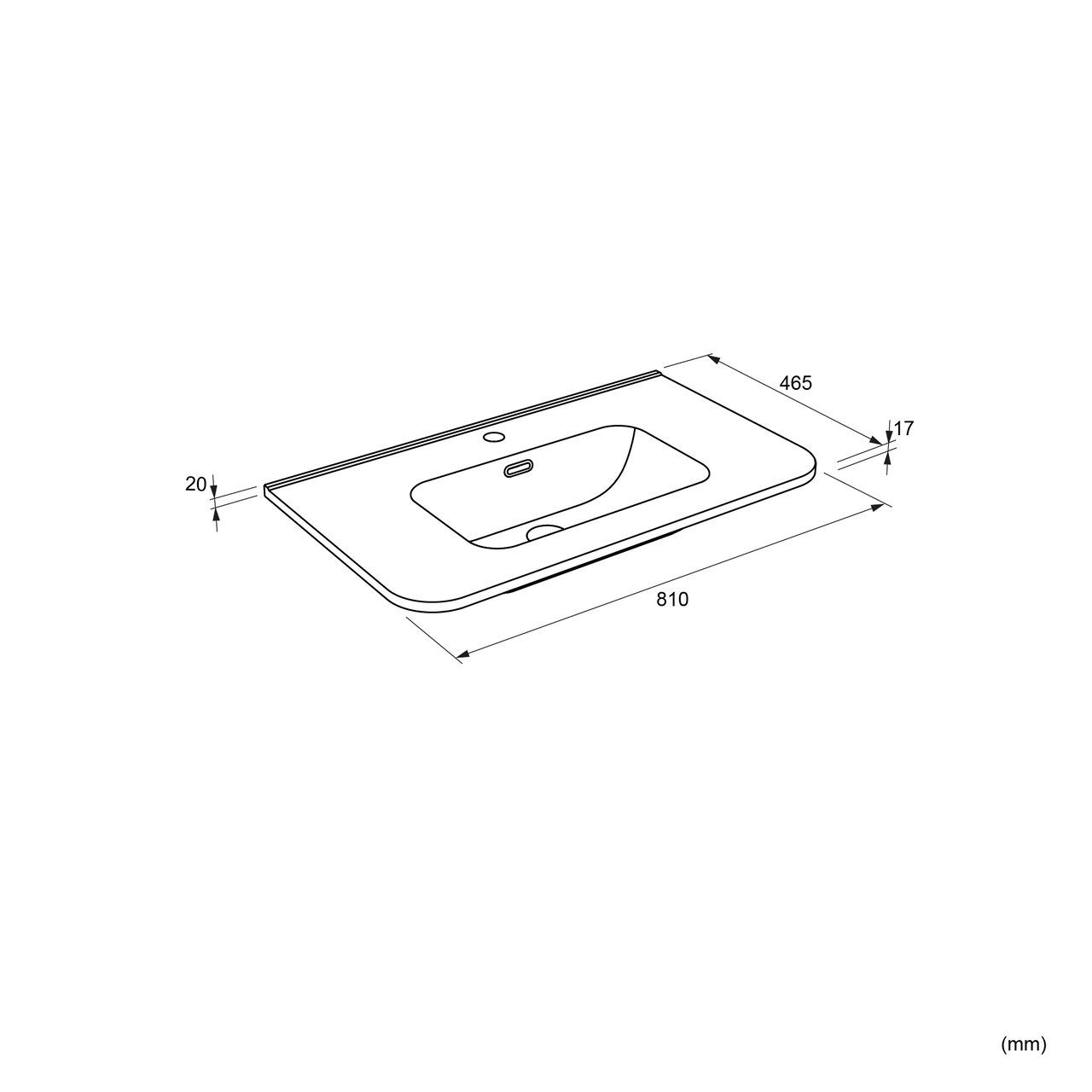 Deze porseleinen wastafelblad heeft een breedte van 80 cm, een diepte van 46 cm en een randhoogte van 1,7 cm. Deze mat witte wastafelblad past in elke badkamer door zijn strakke afwerking.