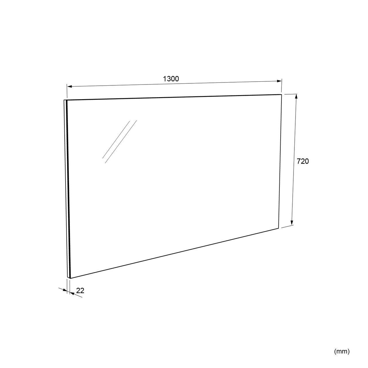 Dit rechthoekig spiegelpaneel heeft een breedte van 130 cm en een hoogte van 72 cm. De spiegel past in elke badkamer door zijn eenvoud.