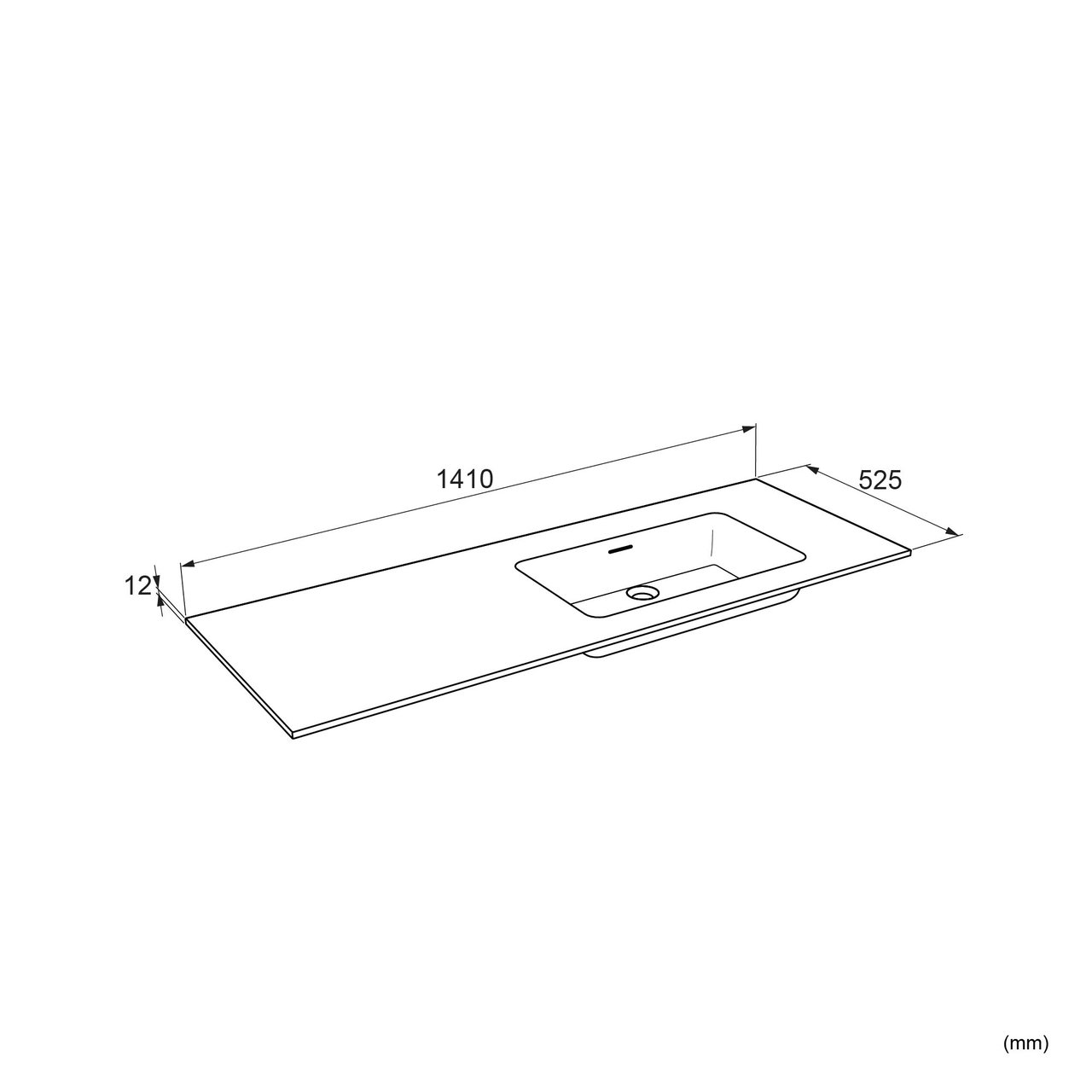 Deze asymmetrische Solid Surface wastafel met geïntegreerde waskom heeft een breedte van 130 cm, een diepte van 52 cm en een randhoogte van 1,2 cm. Deze mat witte wastafel past in elke badkamer door zijn elegante afwerking.