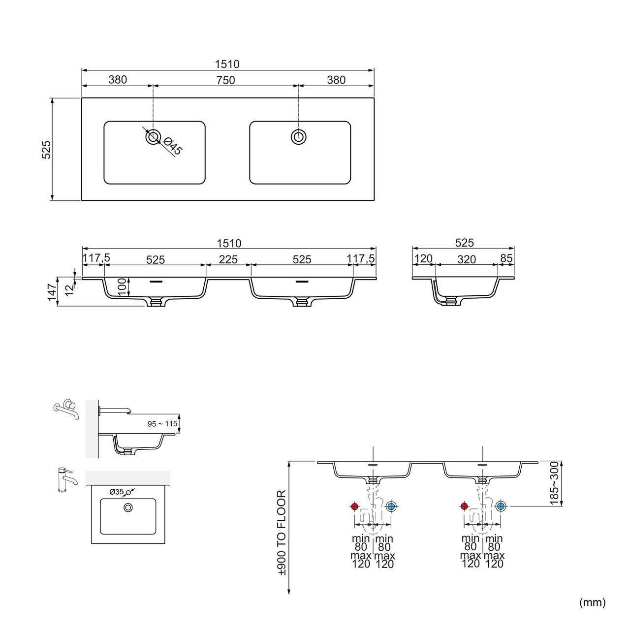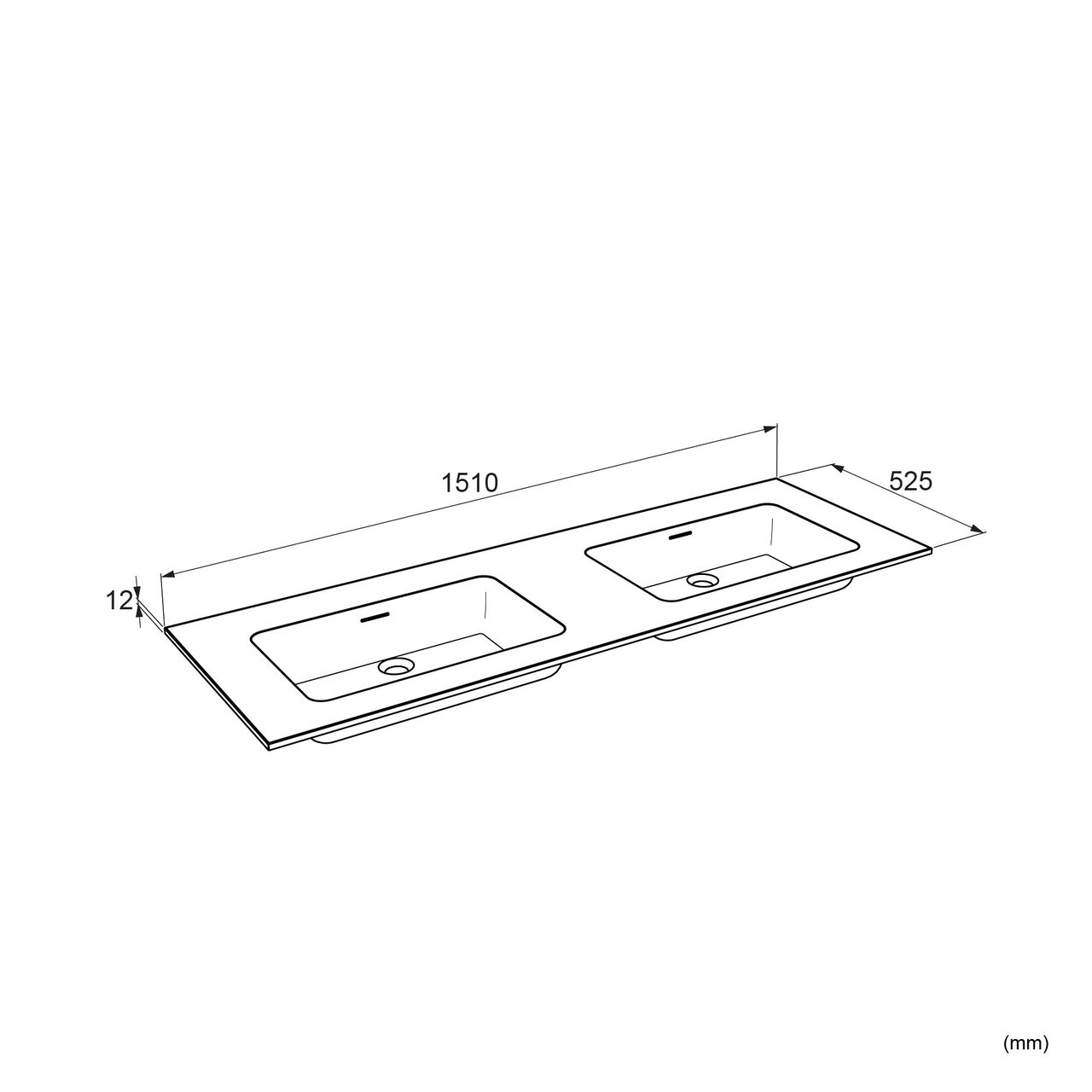 Afmetingen | 150 x 52 cm dubbele wastafel | |