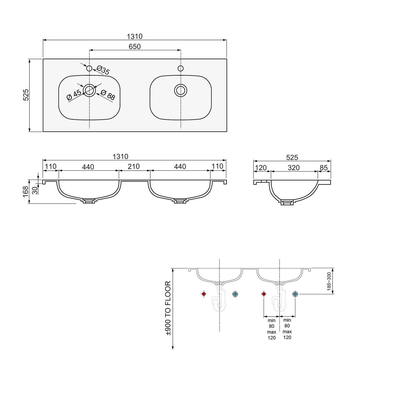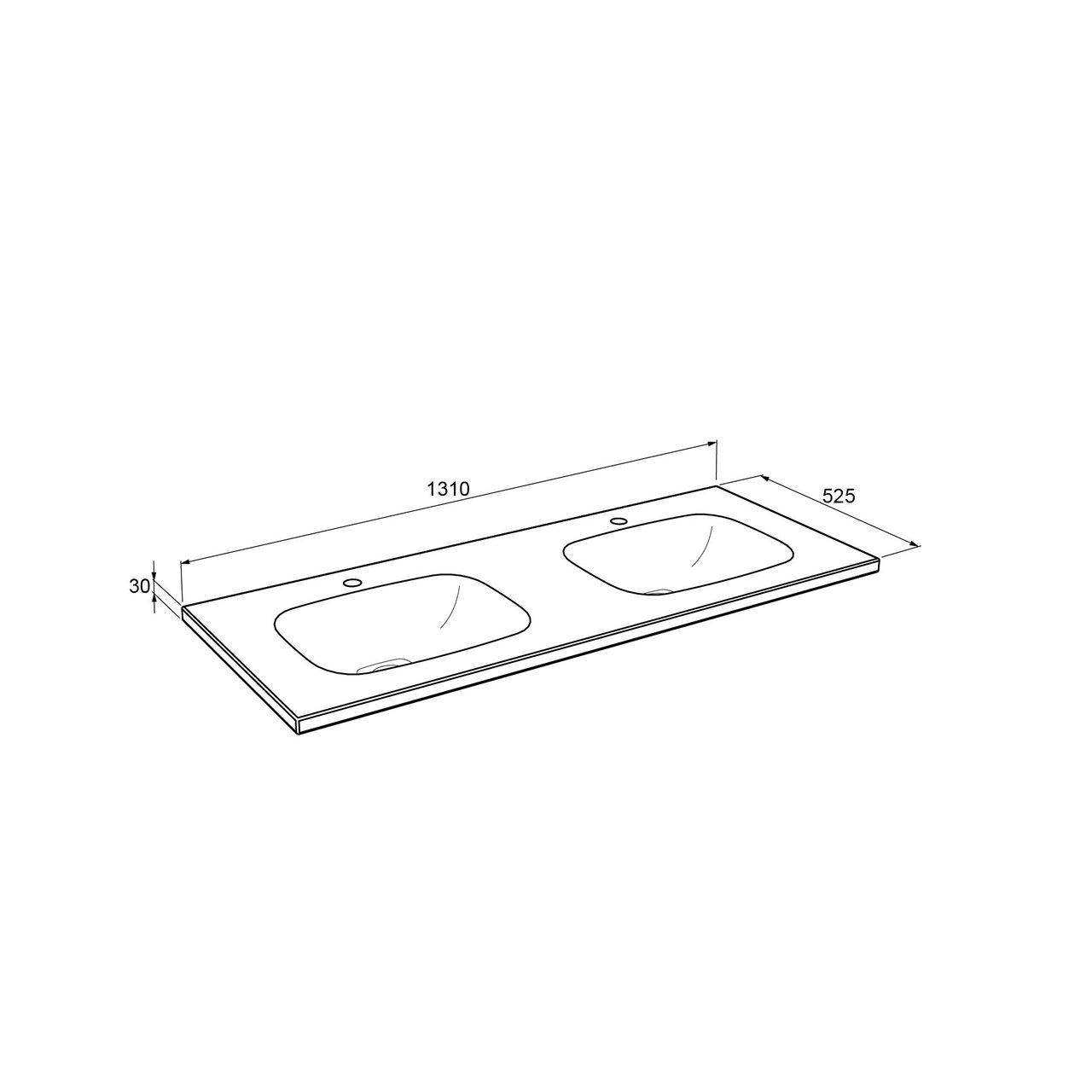 Afmetingen | 130 x 52 cm dubbele wastafel | |