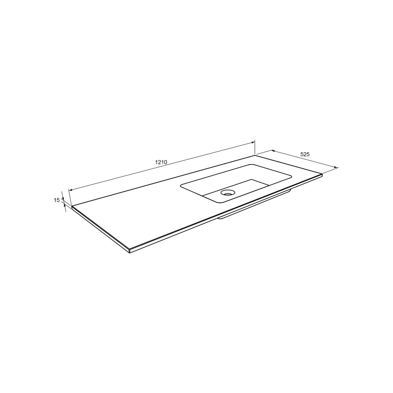 Deze asymmetrische kwarts wastafel met geïntegreerde waskom heeft een breedte van 120 cm, een diepte van 52 cm en een randhoogte van 1,5 cm. Deze mat zwarte wastafel past in elke badkamer door zijn strakke afwerking.