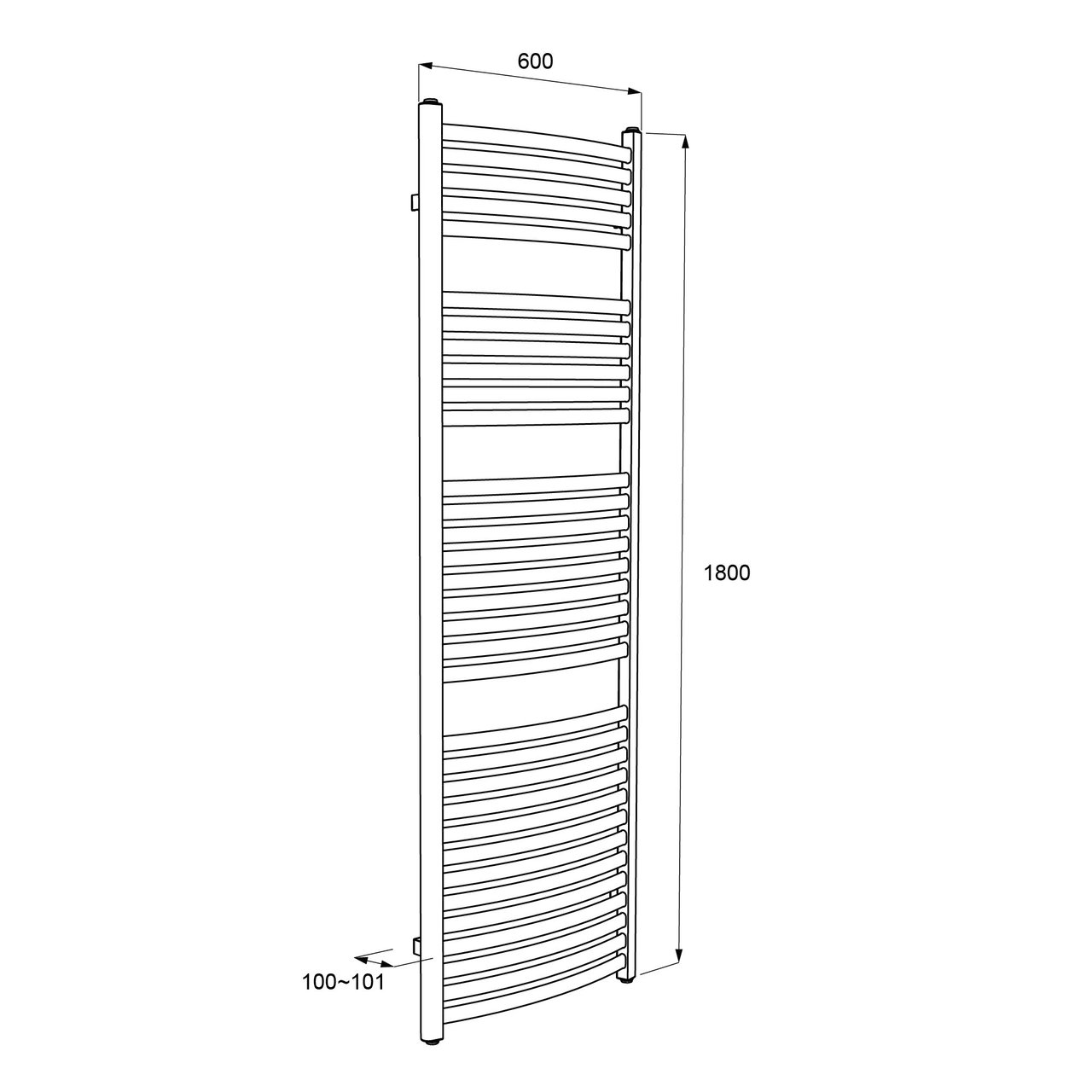 Deze radiator met ronde buizen heeft een breedte van 60 cm en een hoogte van 180 cm. De glanzend witte radiator past in elke badkamer door zijn frisse afwerking.