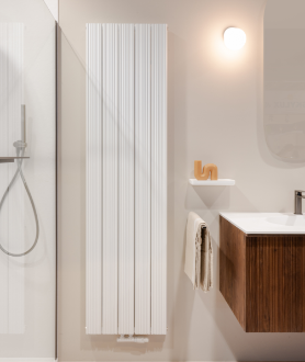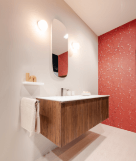 Een badkamer die trendy asymmetrie combineert met comfort en stijlvolle robuustheid. Geniet elke dag van een badkamer waar functionaliteit en design elkaar versterken.